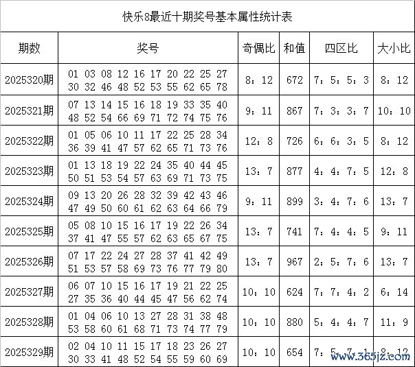 福彩现象8第2025329期开出奖号:02 04 10 11 15 17 18 23 26 27 30 33 41 48 52 54 55 59 60 69,其中奖号奇偶比为10:10,和值为654,跨度67,四区比为7:5:7:1。